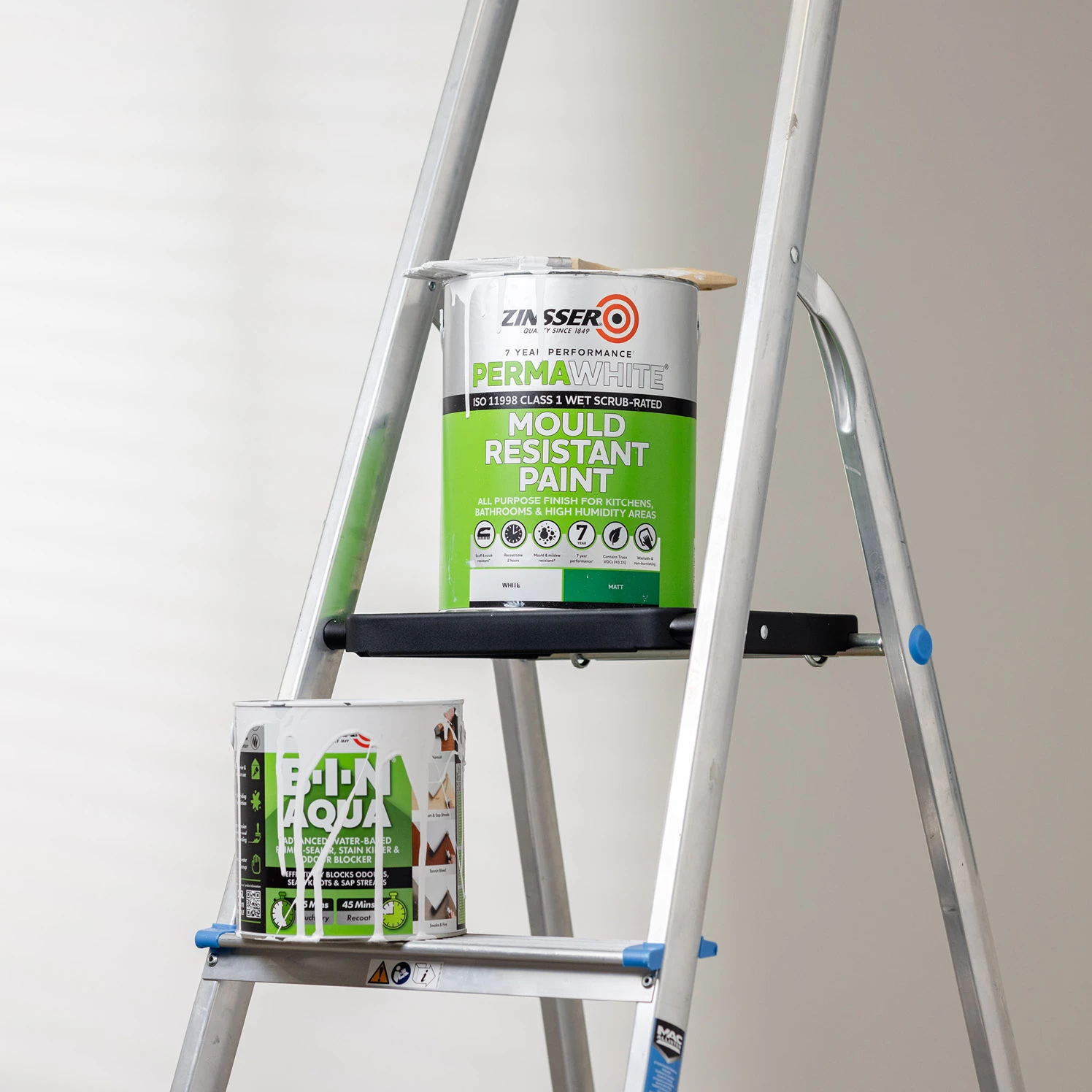 Prime overall with one full coat of Zinsser Bulls Eye® 1-2-3 or B-I-N AQUA in accordance with the manufacturer’s instructions and drying times.