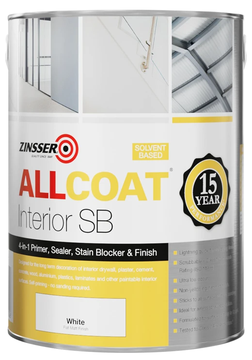 AllCoat® (solvent-based) is our ultimate interior refurbishment paint. It is a 4-in-1 primer, sealer, stain blocker and finish. It is ideally suited to commercial interior applications and offers exceptional sprayability, one coat coverage and virtually odour free application.