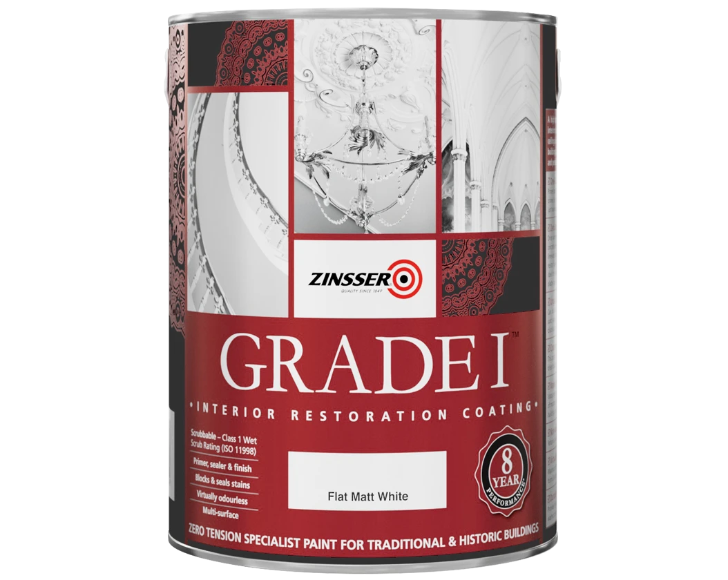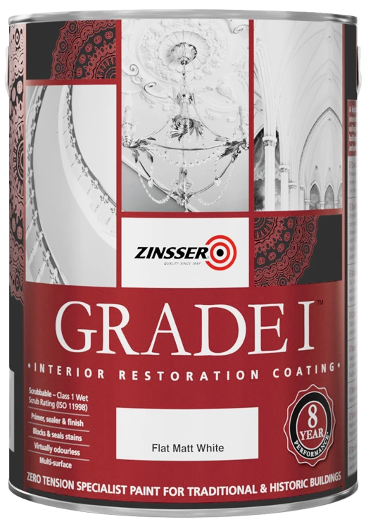 Zinsser Grade 1 is a high performance, mould resistant paint for the interior decoration of walls and ceilings in traditional and historic buildings, including churches, castles and period properties.