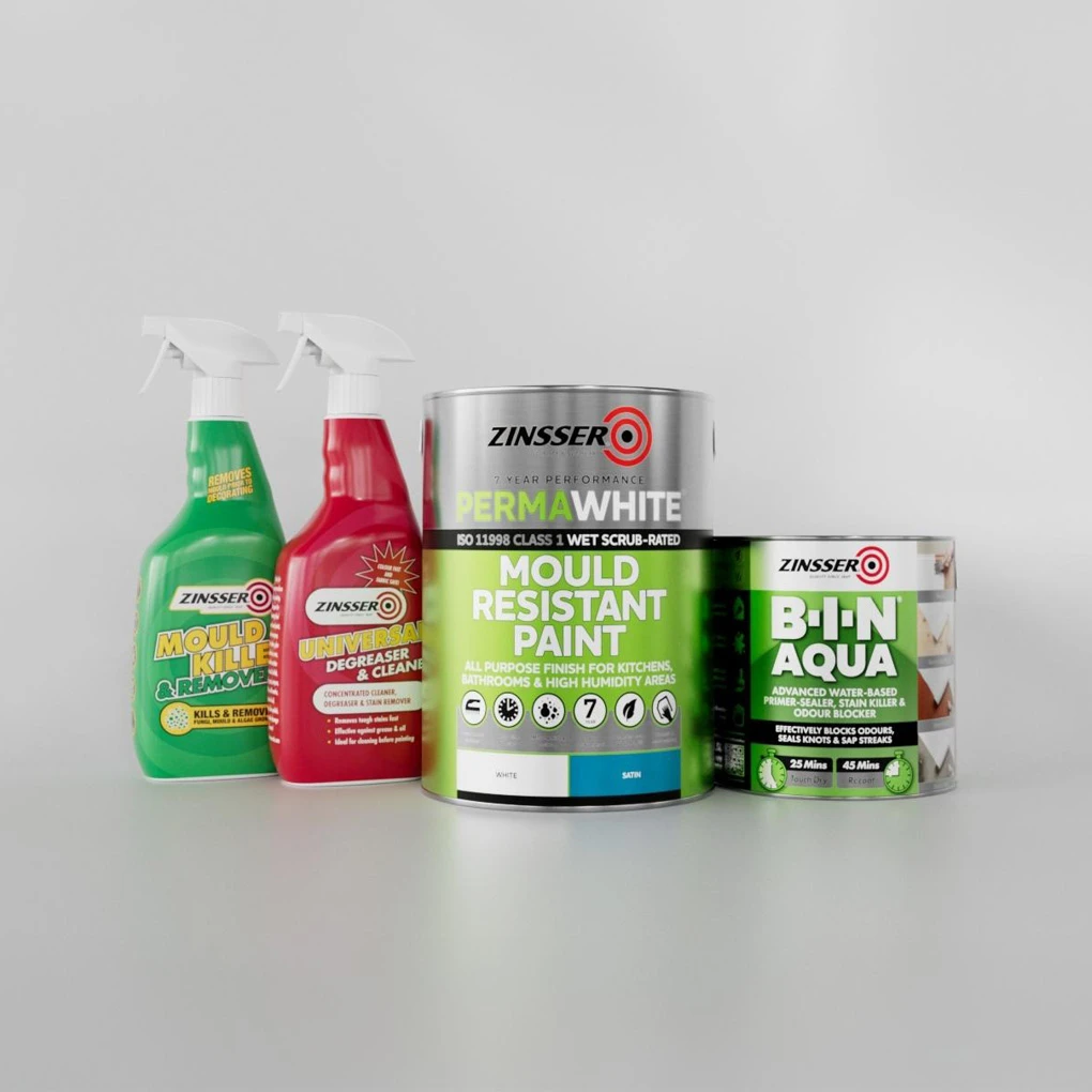Zinsser Permawhite also comes in matt and satin finishes, ideal for kitchens, bathrooms and any other areas prone to high humidity and poor air circulation.