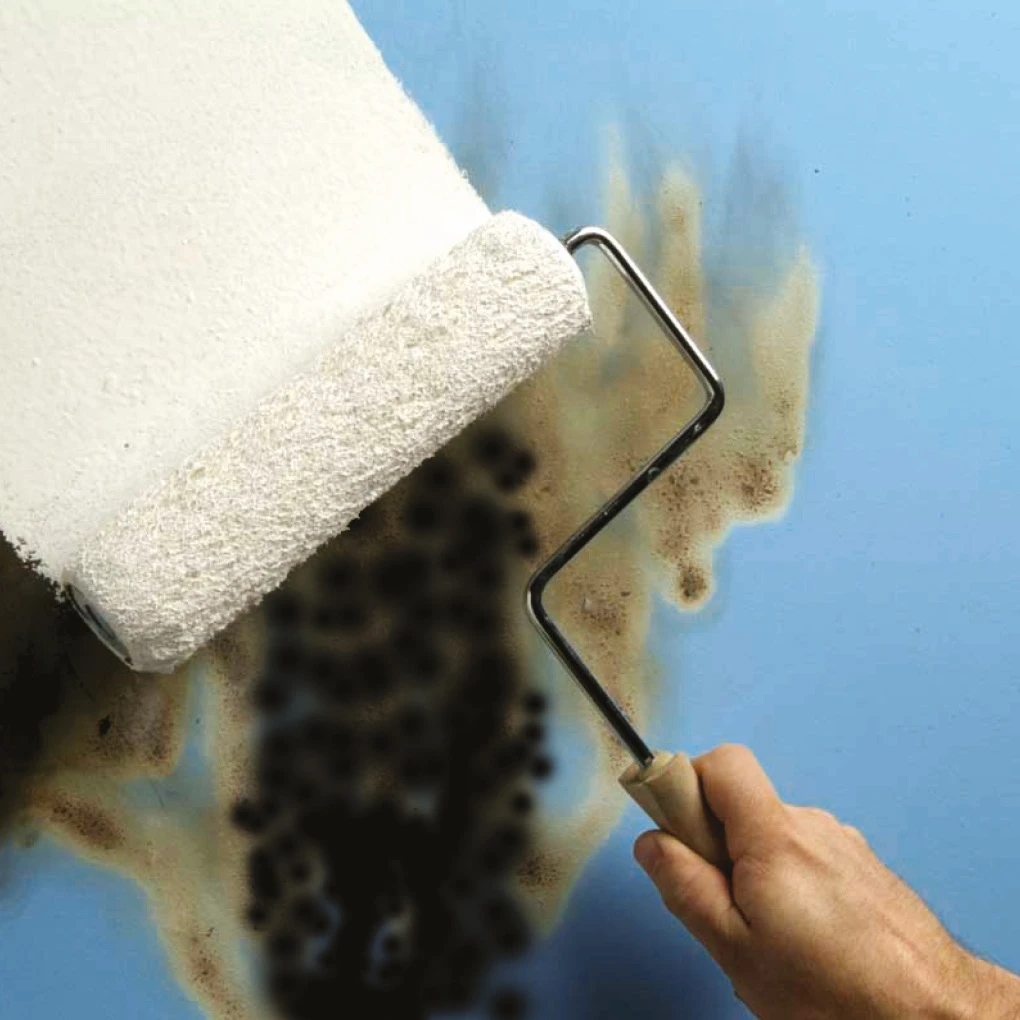 Remove all visible signs of organic growth and treat the areas with Zinsser Mould Killer & Remover in accordance with the manufacturer’s instructions. Allow to dry.