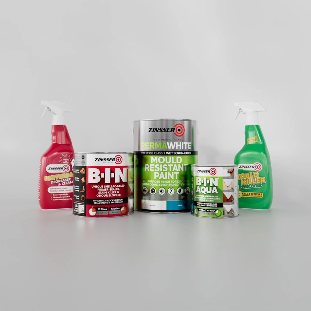 Next, apply Zinsser Mould Killer and Remover to the affected areas to prepare them before painting and provide a long-lasting finish.