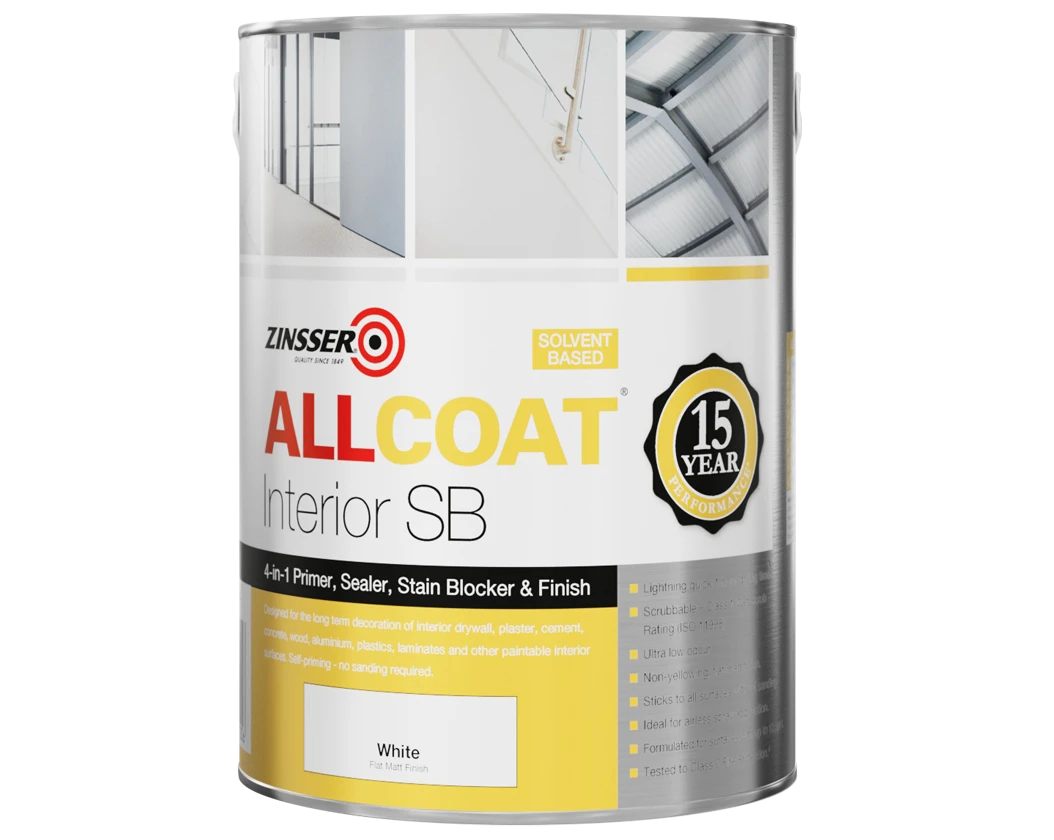 AllCoat® (solvent-based) is our ultimate interior refurbishment paint. It is a 4-in-1 primer, sealer, stain blocker and finish. It is ideally suited to commercial interior applications and offers exceptional sprayability, one coat coverage and virtually odour free application.