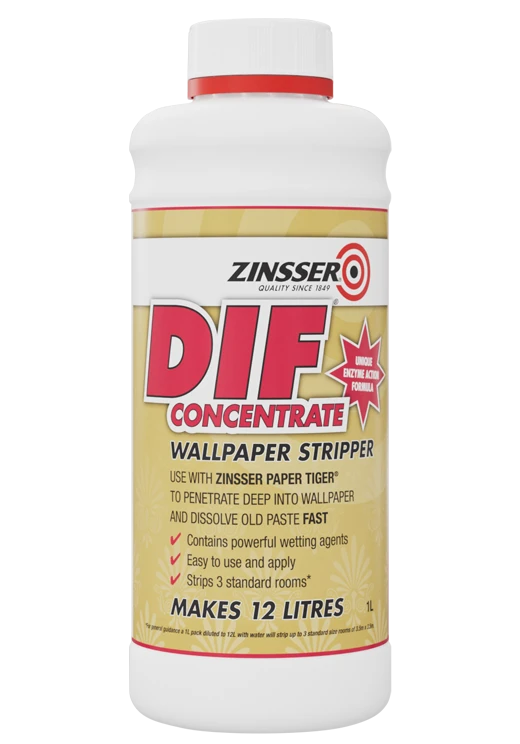DIF® wallpaper stripper is the patented wallpaper stripper based on enzyme action for fast and easy removal of wallcoverings.