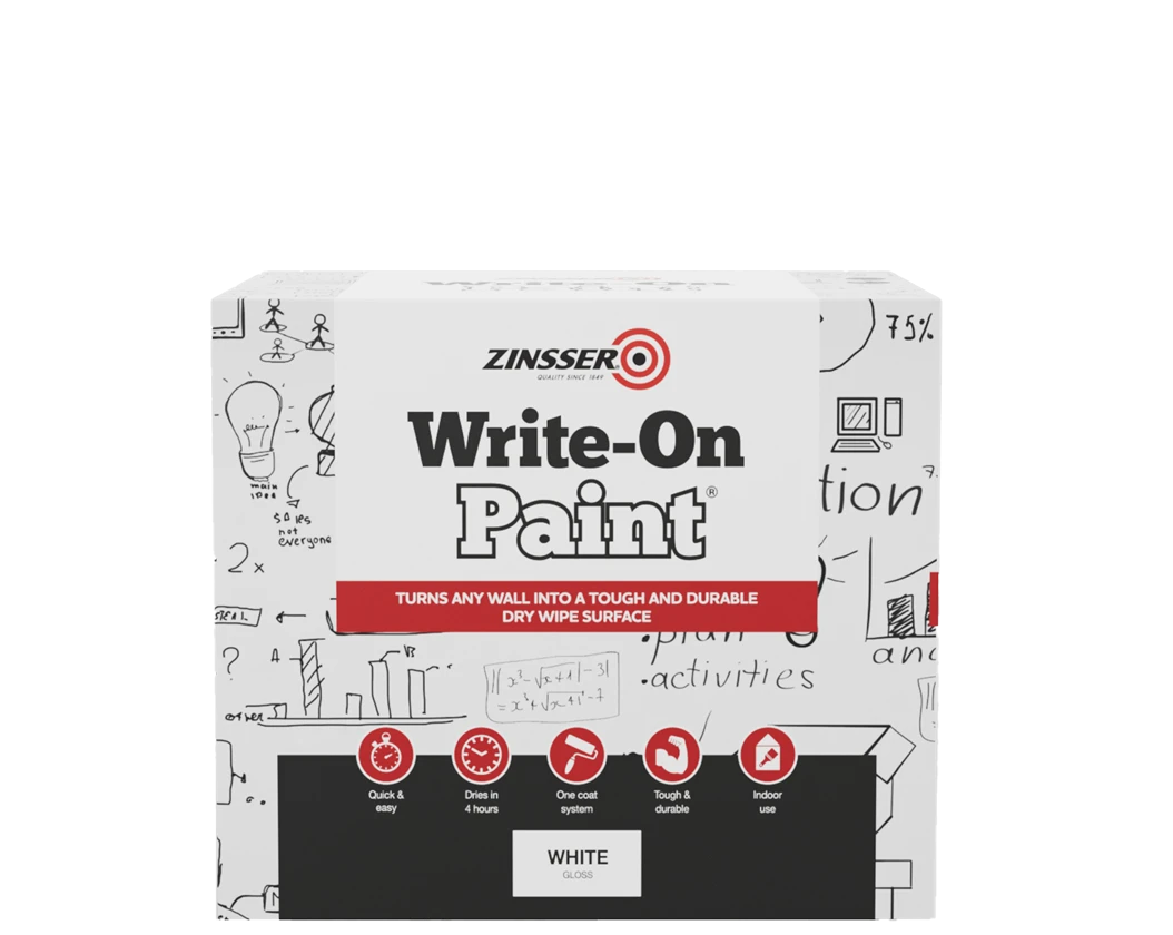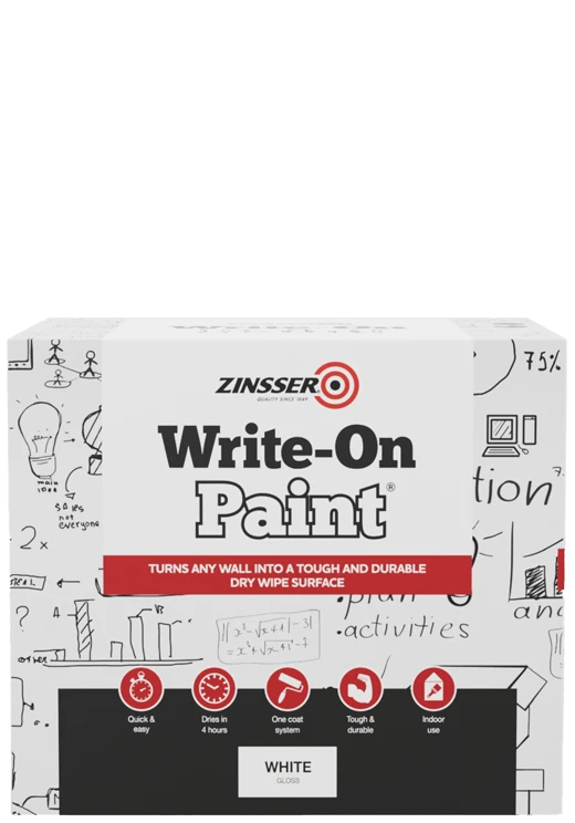 Zinsser Write-On Paint® allows you to turn any wall in your office or classroom into a creative centre. Write-On Paint® is a white coating that transforms your ordinary walls into a dry wipe surface. After simple installation you will be able to use any standard dry-wipe marker* on your walls.